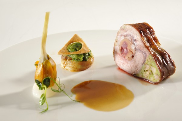Carré de veau en tradition lyonnaise, rognonnade, bourgeon d’artichaut calice, feuilles de laitue farcies, jus mélilot