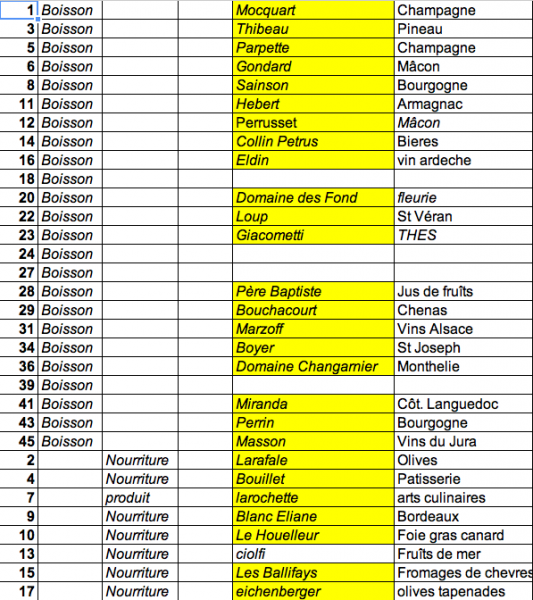 Sont proposés les foies gras de canard de Gascogne et d’oie de la drôme, la viande d’autruche, des charcuteries des Monts du lyonnais, de l’Ardèche, des fromages, des produits halieutiques, huîtres, saumon etc… et préparations culinaires de pêcheur , des truffes, des confits, des spécialités méridionales et plats cuisinés du sud, les olives et produits dérivés, l’huile d’olive bien sur, les escargots, les quenelles etc… des chocolats, des macarons, des miels, des confitures…des curiosités avec des produits crètois ou des Balkans.