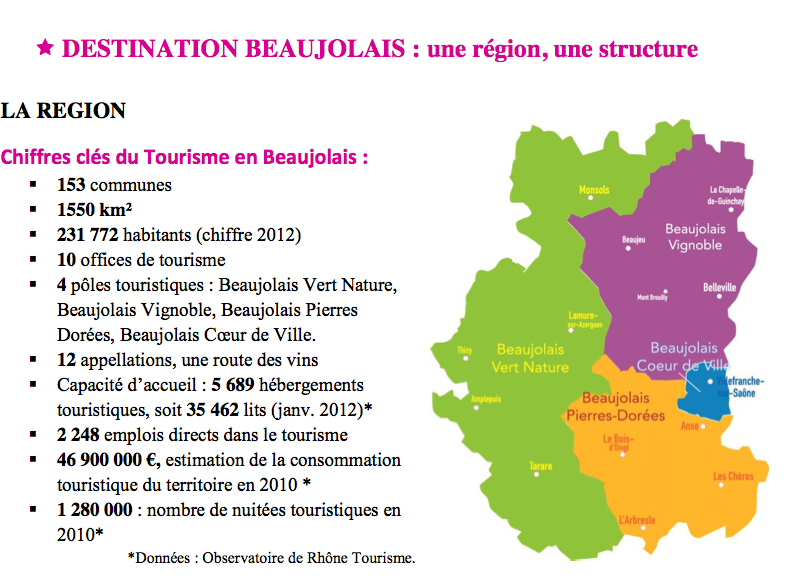 Les 4 pôles touristiques du Beaujolais seront tous présents : Beaujolais Vert Nature, Beaujolais Vignoble, Beaujolais Pierres Dorées, Beaujolais Cœur de Ville.