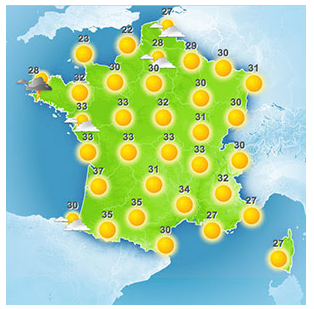 Demain vendredi 18 juillet 2014, on annonce 35 – 36°.