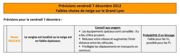 - Conditions de circulation hors agglomération lyonnaise : http://www.bison-fute.equipement.gouv.fr – Tél : 0800 100 200