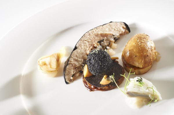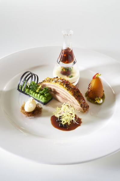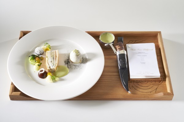 Les organisateurs du Bocuse d’Or avaient déterminé à l’avance les principaux ingrédients pour la viande et le poisson tous d’origine française. Ils ont choisi comme poisson la truite, et, comme viande, la pintade fermière des Landes Label Rouge.
