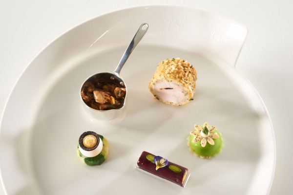 – Un plat de viande : 2 poulets fermiers à pattes bleues Label Rouge, entre 1,7 kg et 2 kg, dressé entièrement sur un plat et comprenant au minimum trois éléments libres de garniture en dehors de la viande.