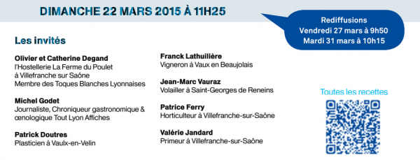 C’est bien ce dimanche 22 mars 2015 à 11h25 qu’Odile Mattei diffusera sur France 3 Rhône-Alpes Auvergne son reportage sur l’Hostellerie de la Ferme du Poulet.