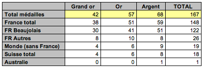 En avant première vous trouverez ci-dessous le tableau récapitulatif des médailles obtenues.