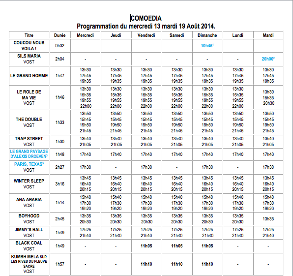 (Détail sur le site Internet du Cœmedia: www.cinema-comoedia.com)
