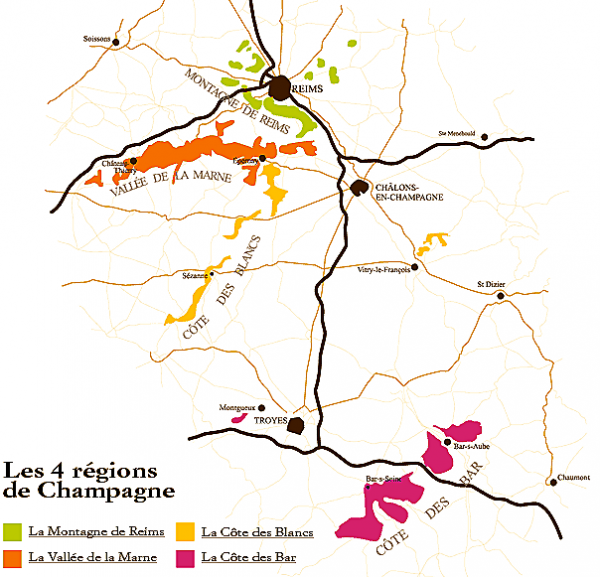Cette appellation se trouve dans 280 000 parcelles représentant 35 000 hectares, cultivés par 20 000 vignerons et sociétés de producteurs (Regroupés dans le syndicat général des vignerons de Champagne), dans les régions viticoles de la Montagne de Reims, la Vallée de la Marne, la Côté des Blancs et la Côte de Bar.
