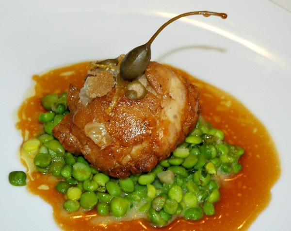 Pomme de ris de veau à la grenobloise et petits pois à la française épluchés un à un à la main ! avec une Grande Réserve (Brut sans année) de Beaumont des Crayères