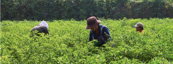 * Un ouvrier qui cueille les piments gagne 0,90€ par 1 kg.