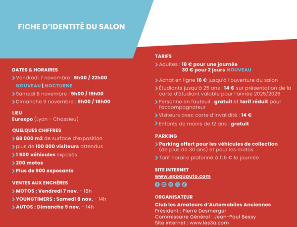 88 000 M2 du 7 au 9 novembre 2025 à Lyon-Eurexpo avec au programme: véhicules anciens, yougtimers et de