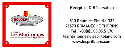 L’Hôtel Les Maritonnes à Romanèche-Thorins (71) et son nouveau restaurant « Rouge & Blanc » vous propose avec Georges Blanc, son nouveau propriétaire, un très gourmand repas de Nouvel-An. A consommer sans modération, mais avec réservation.