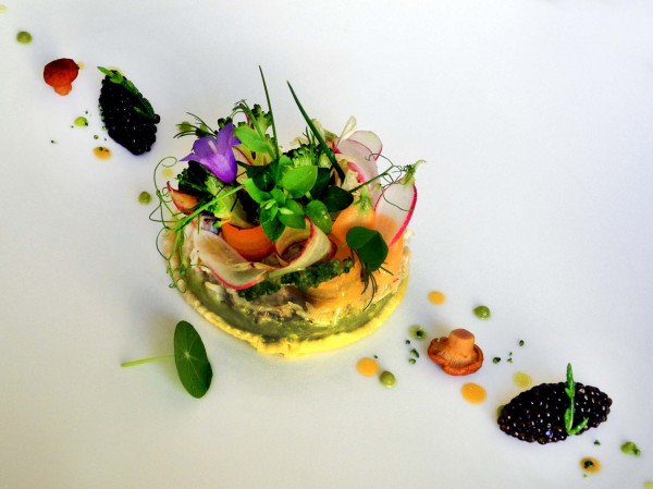 « L’artichaut poivrade sous un voile croustillant, escargot de Bourgogne ».
