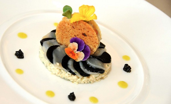 Rémoulade de céleri iodée aux huitres d’Isigny, fine gelée de pomme granny smith.
