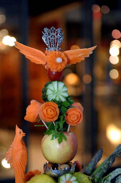 Qui n’a jamais vu dans un salon gourmand, une foire ou une exposition un sculpteur sur légumes ? Cette pratique n’est pas nouvelle et c’est sans doute le cuisinier Urbain Dubois qui l’a créée au début du XIXè siècle, alors que l’on apportait un soin tout particulier à la présentation des buffets.