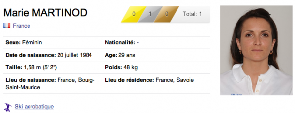 La française Marie Martinod remporte une médaille d’argent en Half-Pipe ( ski acrobatique) ce jeudi 20 février en Russie.