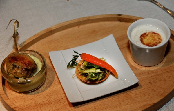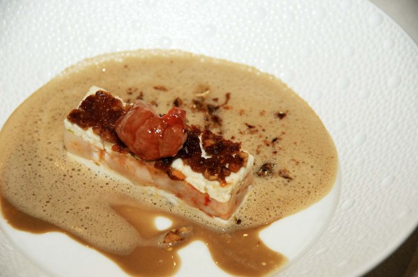 Ainsi l’œuf de plein air cuit 68 minutes à 62,5° (pour éviter une coagulation), accompagné d’un jambon de montagne, de bâtonnets de truffes d’été et d’une soupe d’orties se révèle avec une cuvée Belle Epoque Blanc 2004.
