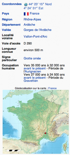 La grotte Chauvet, grotte Chauvet-Pont-d’Arc ou encore grotte de la Combe d’Arc est une grotte ornée paléolithique située en France sur la commune de Vallon-Pont-d’Arc, dans le département de l’Ardèche, en région Rhône-Alpes.