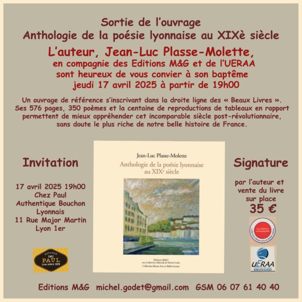 Vous adorez Lyon, le 19è et surtout ses poètes, venez nous rencontrer, Jean-Luc Plasse, l’auteur, et moi-même l’éditeur le jeudi 17 avril 2025 pour découvrir un ouvrage de référence sur le sujet.
