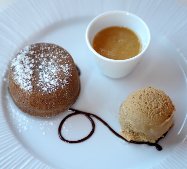 Pour rester classiques, nous avons opté en finale pour le Moelleux au Chocolat servi tiède, avec son caramel laitier au beurre salé et sa boule de glace. Quand bien même il faille prévoir quinze minutes d’attente pour cette gâterie, le jeu en vaut la chandelle. la cuisson du mœlleux est au degré près. Le biscuit n’est pas sec du tout, le chocolat intérieur coulant sans trop et tiède comme il faut. Comme toutes les crèmes caramel, le sucre est bien présent. Faut-il le casser un peu plus ?
