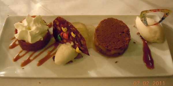 A qui le croustillant de poires confites au caramel, gelée de cidre, tuile au M&Ms et glace crème d’Isigny au Calvados ? Qui pour les dès de pommes rôtis au miel, sablé sarrasin, caramel beurre salé et tuile de sucre piquée dans un sablé au cidre fermier ? Deux belles variations sur le double thème « Normandie » et «multicolore », signées respectivement par Franck et par Olivier pour des desserts où il était un peu plus difficile, même pour les habitués des deux établissements, de reconnaître la patte de l’un ou de l’autre.