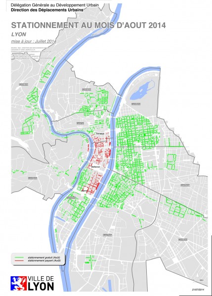 Du 1er au 31 août 2014, 31 700 places de stationnement sur voirie à Lyon sont gratuites (zones Chrono et Tempo).
