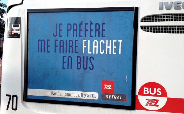 Depuis quelques temps le réseau TCL nous a appris qu’il savait être décalé. N’en prenons pour preuve que la dernière campagne que l’on a vu, entre autres lieux, sur les culs de bus.