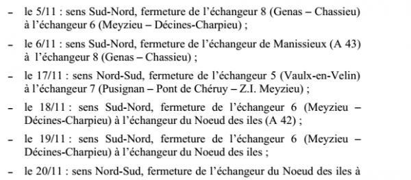 Des déviations locales seront mises en place par l’A 42, la RD 383 (périphérique) et l’A 43.