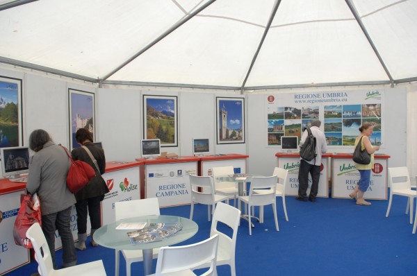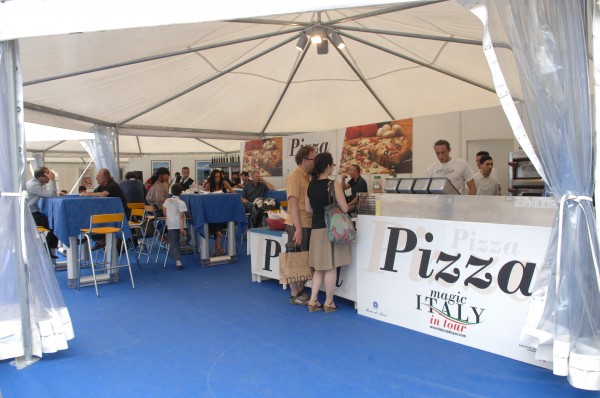 Un semi-remorque accueillant (une fois à l’arrêt, ce camion se transforme en une structure sur trois étages) et des kiosques recréent le modèle et l’atmosphère de la place italienne dans les nombreuses villes visitées par le Tour. Ils offrent aux visiteurs des anticipations des nombreuses merveilles du «Bel Paese », en proposant les délices uniques de sa gastronomie et de son oenologie variées et les informations sur ses destinations touristiques les plus et les moins connues.