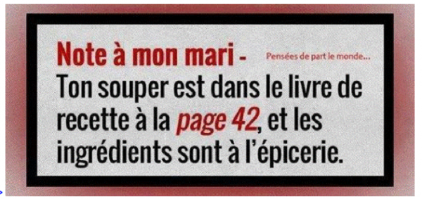 Mesdames: une excellente recette de cuisine pour votre mari !