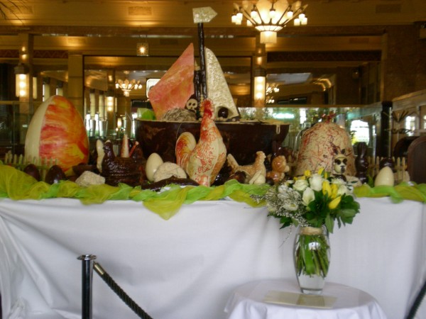 Comme chaque année à pareille époque, les cloches de Pâques sont passées à la « Georges ». Cette brasserie perrachoise emblématique depuis 1836 a réalisé grâce à ses pâtissiers de nombreux sujets en chocolat, dont une poule de 32 kilos et un mètre de haut. Les traditionnels sujets que sont les lapins, les œufs et la friture étaient également du voyage retour de Rome !