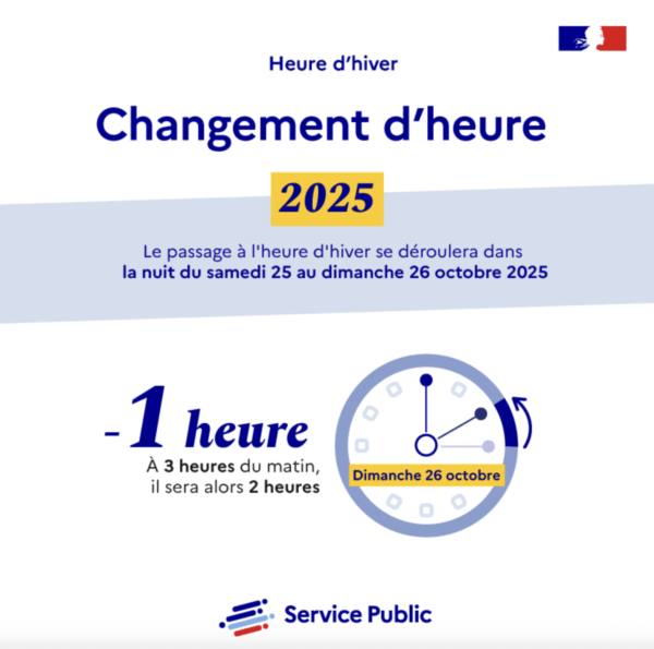 Chaque année, au mois d’octobre, intervient le passage à l’heure d’hiver. Il faudra penser à reculer vos montres d’une heure dans la nuit du samedi 25 au dimanche 26 octobre 2025.