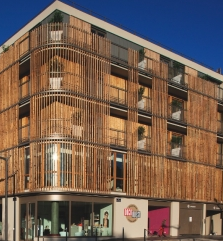 Côté décoration, le parti pris est celui de la noblesse du bois (la façade), du béton et du verre, mettant en valeur une luminosité avérée et un style épuré.