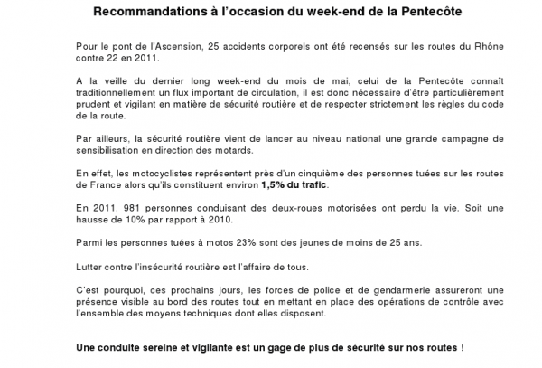 Avec ce week-end de Pentecôte et ses migrations routières, nous vous recommandons la plus grande prudence et vous proposons les conseils de la Préfecture du Rhône.