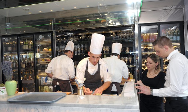 Les cuissons sont exactes (à part le bœuf à peine oublié) et les produits fort bien mis en valeur. La cuisine, réalisée en direct devant vous, fait la part belle aux saveurs, avec des assaisonnements précis et une originalité gourmande, comme les grands chefs savent proposer.