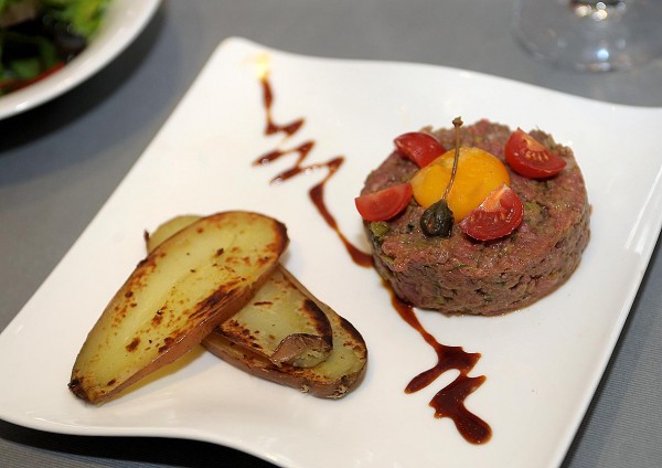 Plus classique et tout aussi gourmand, le tartare de bœuf, pommes Rosewald, condiments et bouquet de mesclun ne soufre pas l’ombre d’un reproche.
