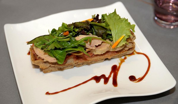 Beaucoup plus originales et remplies de mille et un goûts, les tranches de foie gras de canard présenté sur une gaufre aux épices et au sarrasin agrémentée d’une marmelade de rhubarbe, façon chutney.