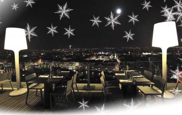 Bon appétit. La vue de Lyon depuis la colline qui prie vous est offerte avec ses lumières et lumignons.