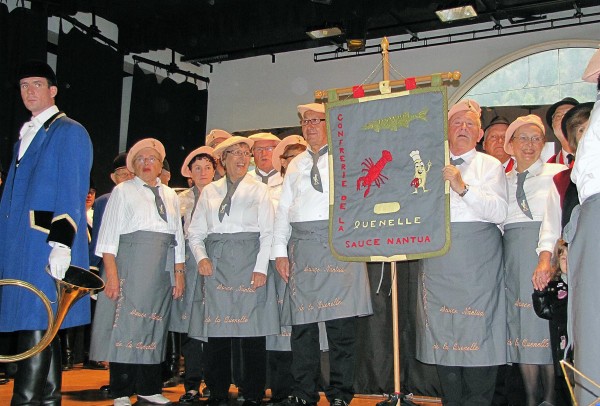 Dernière née de la grande famille des associations gourmandes, la confrérie de la quenelle sauce Nantua a fait ses grands débuts en public lors de la troisième édition de la fête de la quenelle… à Nantua. Une entrée en fanfare, célébrée par les sonneurs de la Diane Bressane venus de Bourg-en-Bresse et leurs compagnons de chasse du Rallye Trompes Oyonnaxien; avec le concours d’une délégation des Commandeurs du Bugey. Heureux d’être les témoins privilégiés de l’événement, ces défenseurs des vins du cru n’étaient pas venus les mains vides.