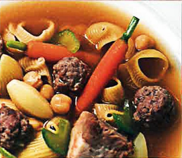 4* Servir d’abord le bouillon puis y ajouter les viandes (que vous pourrez éventuellement couper en petits morceaux) et les légumes.