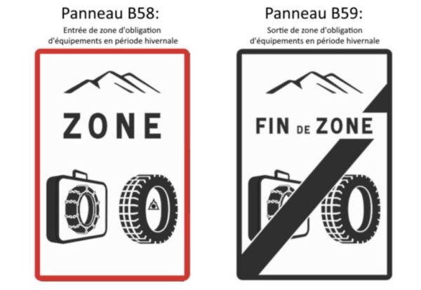 De nouveaux panneaux de signalisation informeront de l’entrée dans une zone à équipement obligatoire. En cas d’absence de neige ou de verglas, les dispositifs amovibles – chaînes ou chaussettes à neige – sont conservés à bord du véhicule.