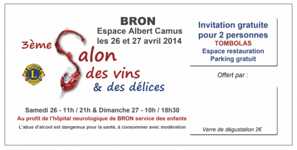 La troisième édition d’un Salon des vins et des délices se déroulera à l’Espace Albert Camus de Bron les 26 et 27 avril 2014.