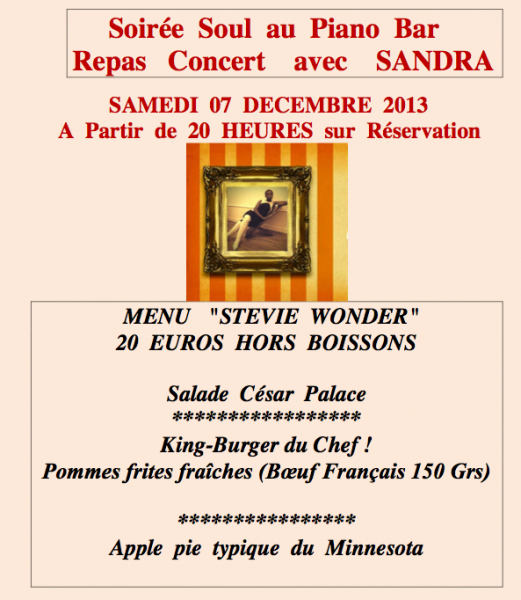A moins d’un mois des fêtes de fin d’année, Lyon Saveurs vous propose cette belle soirée Soul, sous forme de repas concert au Jardin Gourmand avec Sandra, une chanteuse qui vaut le détour…