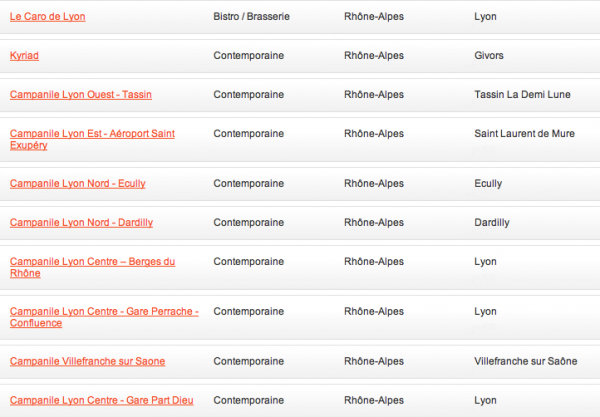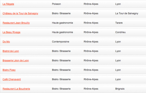 Liste des trente deux restaurants rhodaniens qui participent à la seconde opération « Tous au Restaurant »: