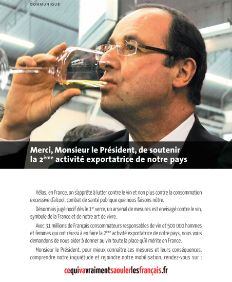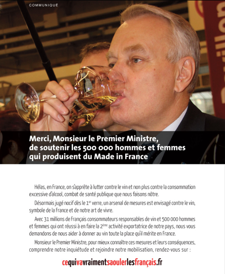 Vin & Société, les 500 000 acteurs de la vigne et du vin, ont lancé ce matin à 11 heures une campagne de mobilisation nationale : cequivavraimentsaoulerlesfrancais.fr